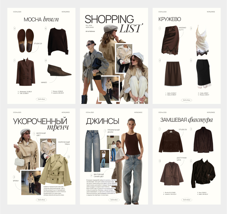 В нем собраны база и тренды, которые легко адаптировать под твой гардероб, а не заменять его. Ты сможешь выбрать только нужные вещи, которые дополнят твои образы, без хаотичных покупок.